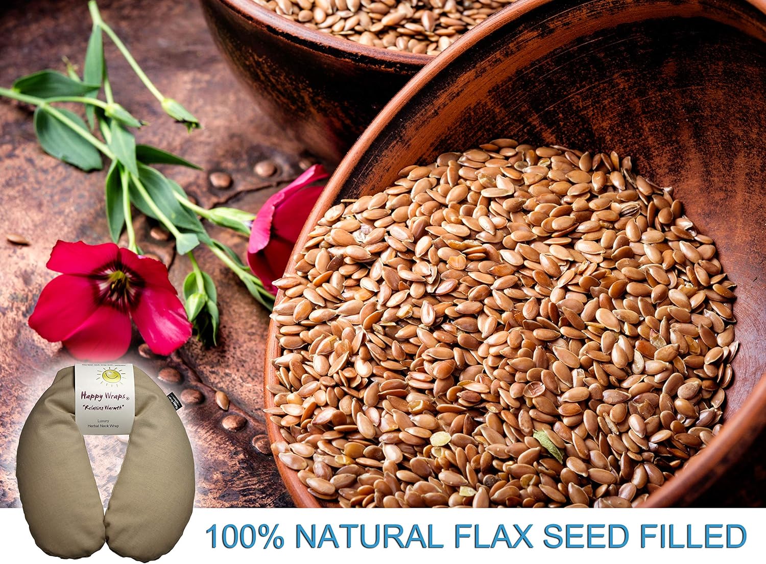 Microwavable Herbal Neck Wrap - Hot Cold Aromatherapy Neck Warming Pillow - Heating Pad for Migraines, Stress, Gifts for Women, Birthdays, Christmas and Free Sleep Mask - Tan Cotton