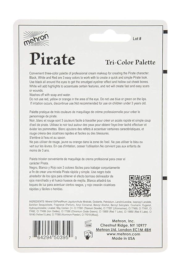 Mehron Makeup Tri-Color Character Makeup Palette | Halloween, Special Effects and Theater Cream Makeup FX Palette | Face Paint Makeup .7 oz (20 g) (Pirate)