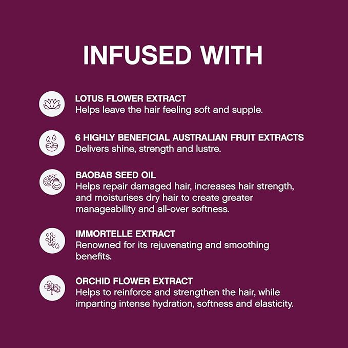 - Hair Hydration Ingredients: Formulated with Amino Acids, Baobab Seed Oil, and Lotus Flower Extract, this hair treatment strengthens, softens, and restores ageing hair