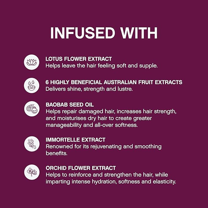 - Hair Hydration Ingredients: Formulated with Amino Acids, Baobab Seed Oil, and Lotus Flower Extract, this hair treatment strengthens, softens, and restores ageing hair