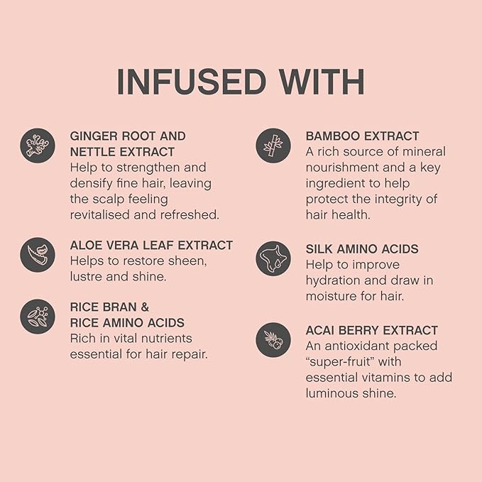 - Strength & Vitality: This nourishing thin hair shampoo will transform fine and ageing hair into stronger, fuller-looking locks