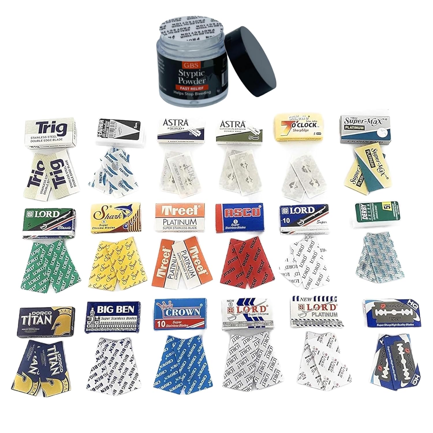 G.B.S Sharp Blades and Styptic Powder Jar, Stops Bleeding from Shaving Nicks and Cuts Soothes Skin and Pore After Shave, Pack of 36