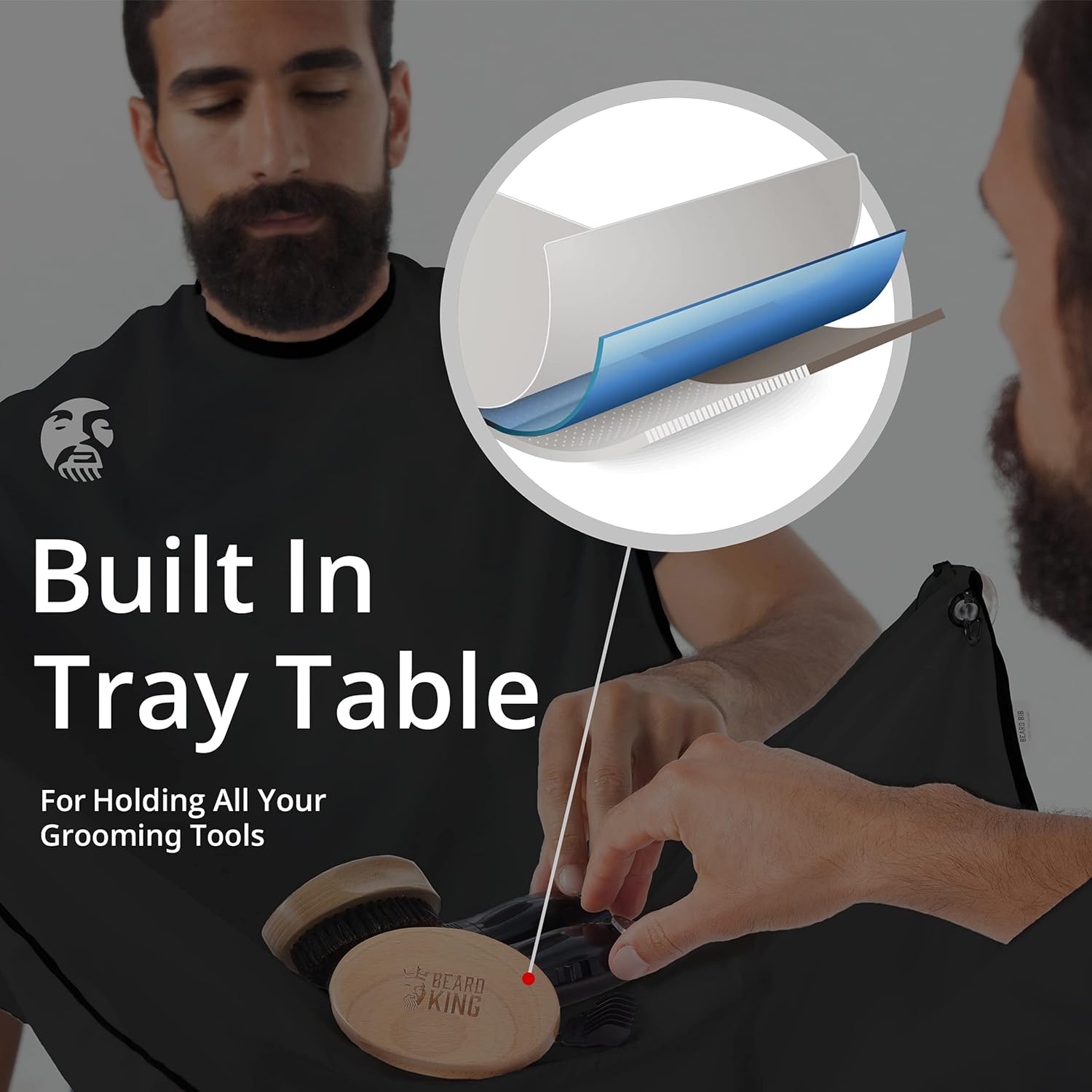 - EFFECTIVE: Be prepared for any perilous quest! This deluxe set for men includes the static and stick-free beard apron with a wide scoop, built-in-tray for trimming tools, replacement parts, and a travel pouch with room for grooming accessories.