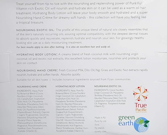 Pure Fiji Nourishing Trio, Ideal Spa Bath Gift Set for Women - Travel Kit - Includes Exotic Body Oil, Hydrating Body Lotion For Women and Nourishing Hand Cream, Noni Scent