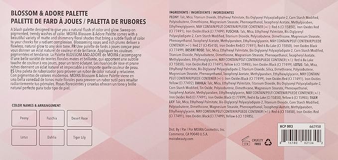 - [HOW TO USE IT] May be worn alone or over makeup. Apply to the apples of the cheeks and blend out for a natural-looking glow. NET WEIGHT:0.19 oz. / 5.6 g (x6) INGREDIENTS PEONYTalc, Mica, Titanium Dioxide, Ethylhexyl Palmitate, Bis-Diglyceryl Polyacyladipate-2, Corn Starch Modified, Polyisobutene, Dimethicone, Magnesium Stearate, Phenoxyethanol, Tocopheryl Acetate, Methylparaben,Ethylhexylglyceri
