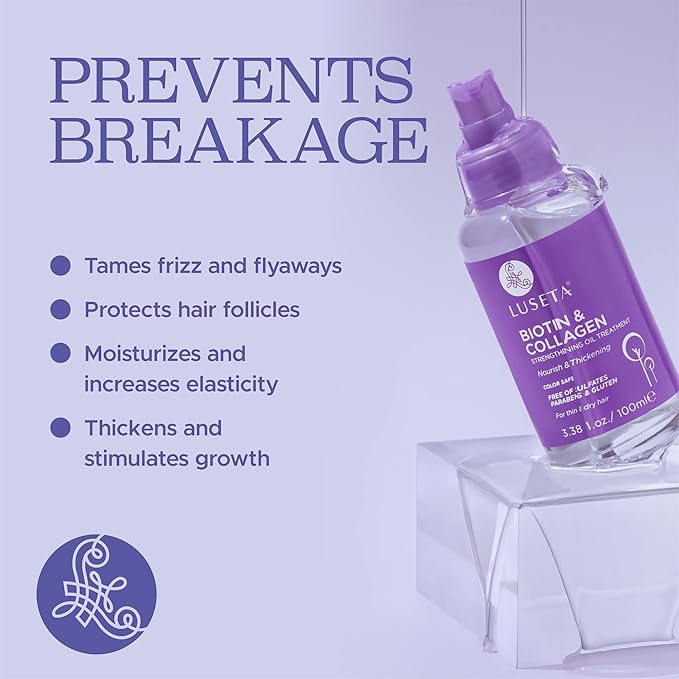 - Our biotin and collagen oil treatment for hair is color safe, free of sulfates, paraben. Combine with LUSETA biotin shampoo and conditioner set for better result.