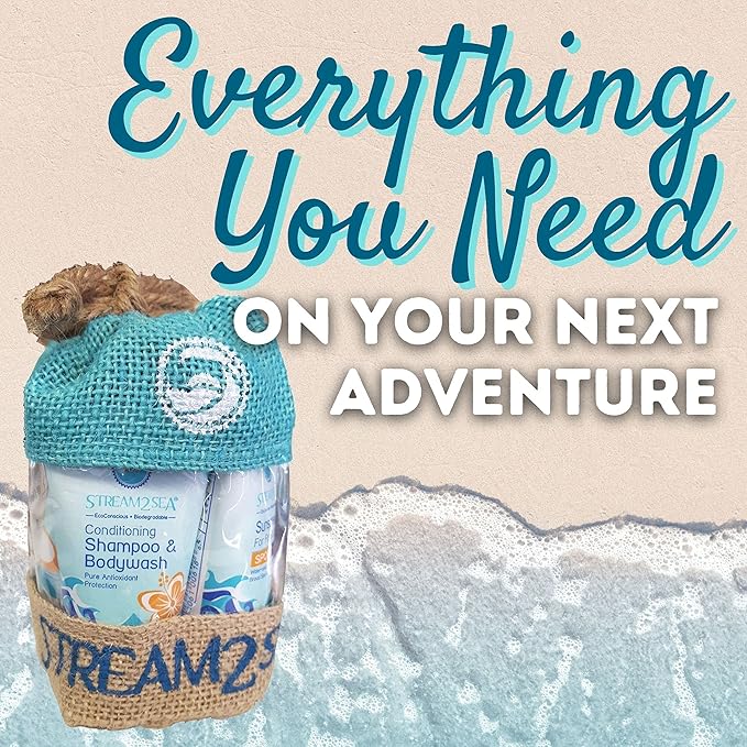 EcoConscious Travel Kit Body & Hair Care Gift Set | Shampoo & Body wash | Conditioner | SPF30, SPF20 and Mineral Sunscreen | SPF 30 Cucumber Mint and Hydrate Cherry Vanilla Lip Balm by Stream2Sea