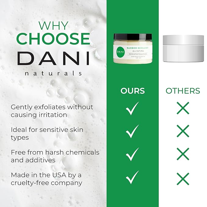 - ● Mess-Free & Non-Greasy Formula – The smooth, Our sugar scrub has been whipped glides on easily without separating, leaving no greasy residue, providing a luxurious experience while your skin stays delicately scented with Bamboo Bergamot