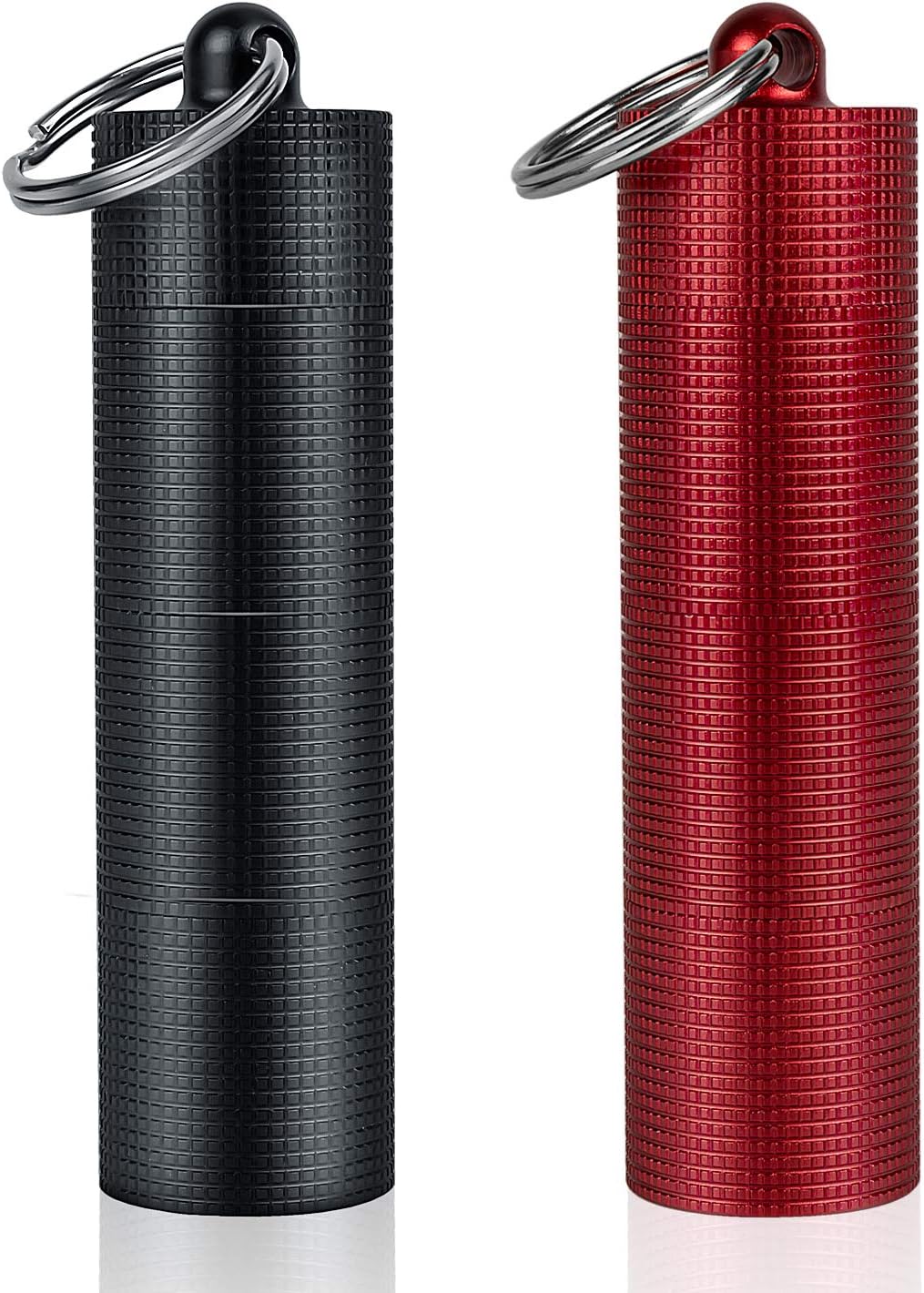 PPFISH 2 PCS Portable Daily Pill Case, 3 Compartments Aluminum Alloy Waterproof Pill Box Dispenser, Small Pocket Pill Container, Keychain Pill Fob, Travel Pill Holder for Men Women