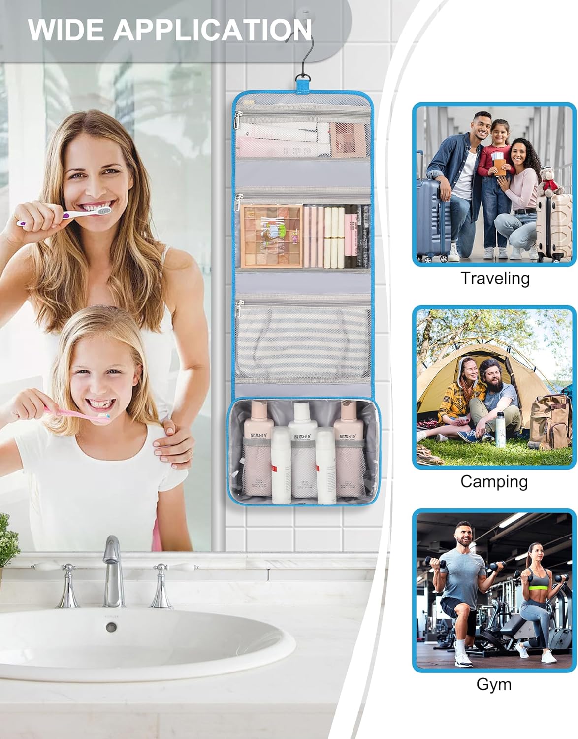 Relavel Travel Hanging Toiletry Bag for Women Men Large Capacity Makeup Bag Waterproof Cosmetic Storage Organizer Case for Bathroom Shower (Blue)