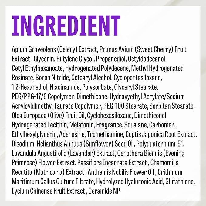 - RESILIENT & REVITALIZED SKIN Infused with 50,000 ppm of Melatonin Liposomes and Adenosine, this facial moisturizer enhances skin elasticity and resilience which offers the same revitalizing benefits as a restful night's sleep, leading to a younger-looking and well-nourished complexion.