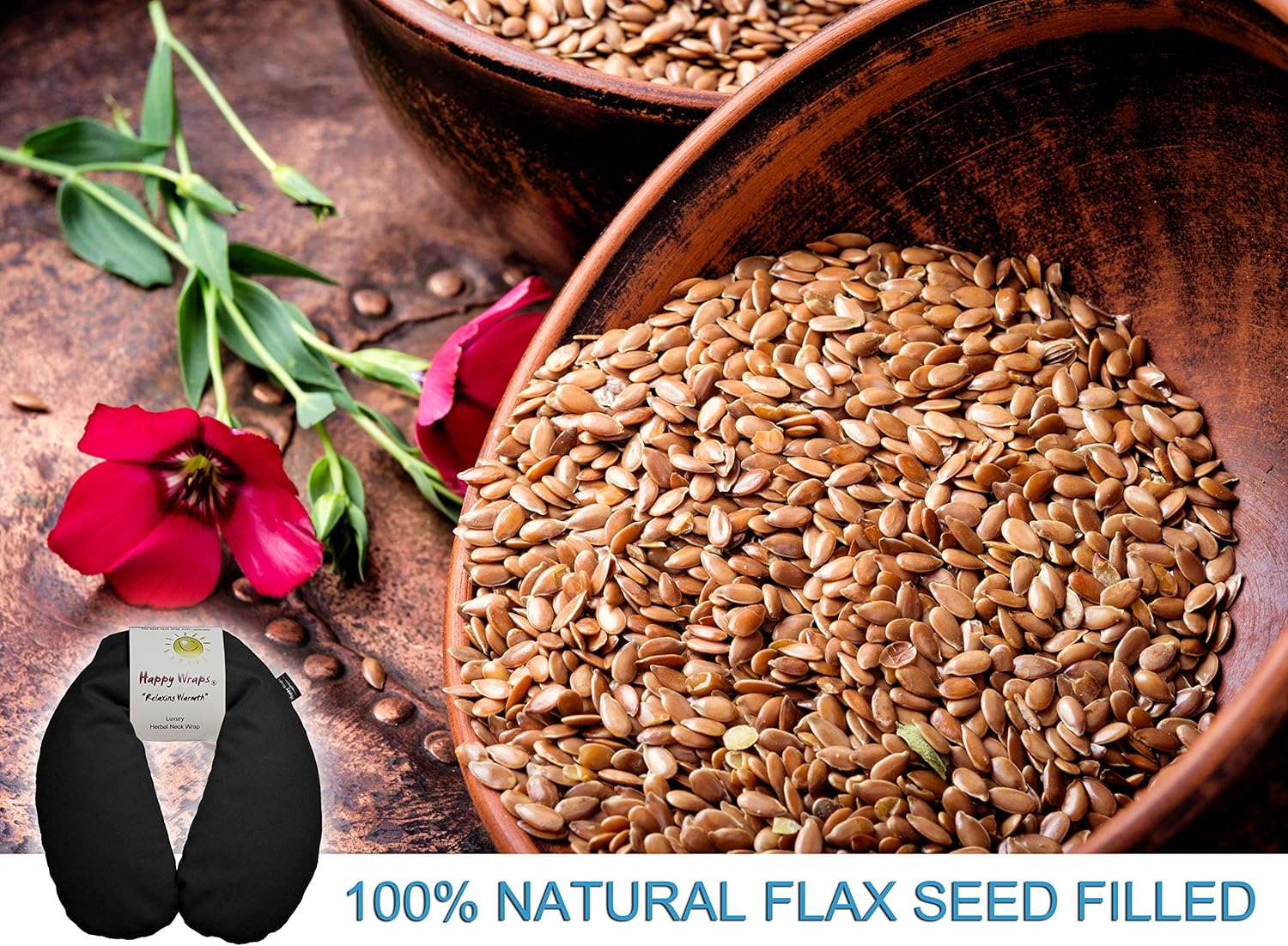 Microwavable Herbal Neck Wrap - Hot Cold Aromatherapy Neck Warming Pillow - Heating Pad for Migraines, Stress, Gifts for Women, Birthdays, Christmas and Free Sleep Mask - Black