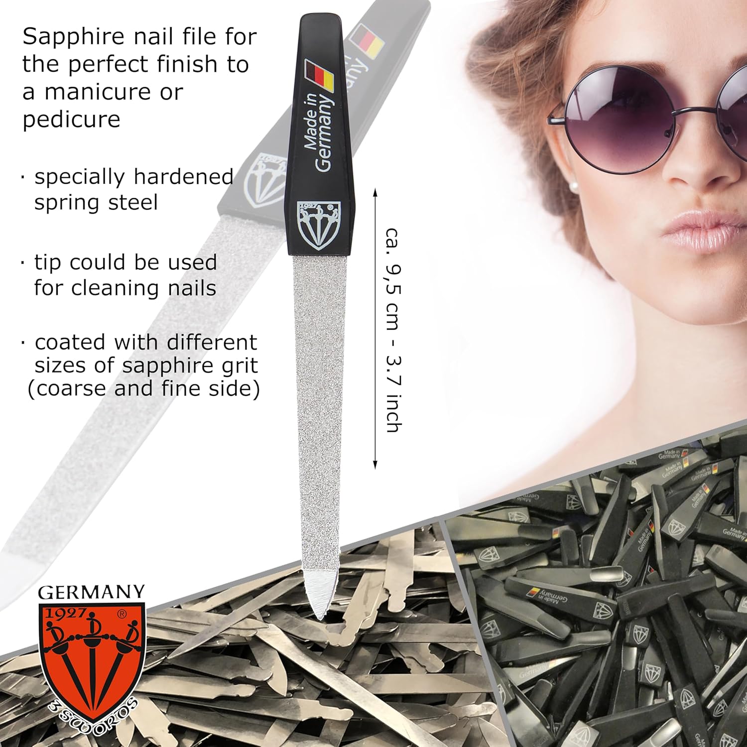 - CONTENTS: Nail clipper, toe nail clipper, sapphire nail file (fine and coarse coating).