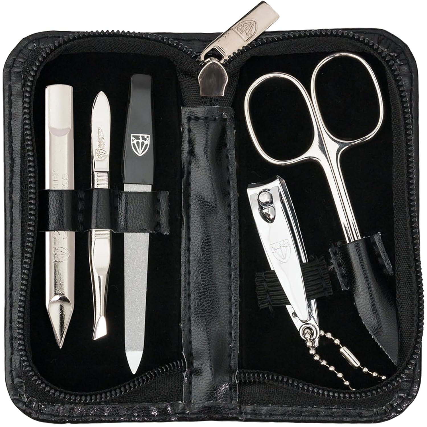 3 Swords Germany - brand quality 5 piece manicure pedicure grooming kit set for professional finger & toe nail care with synthetic leather case black - Made in Germany