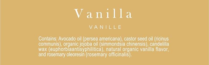 - Pure Ingredients: Avocado oil, organic jojoba oil, castor oil, candelilla wax, Vitamin E, essential oil, natural flavor, and rosemary oleoresin. Pure ingredients that are protective, healing, and soothing.