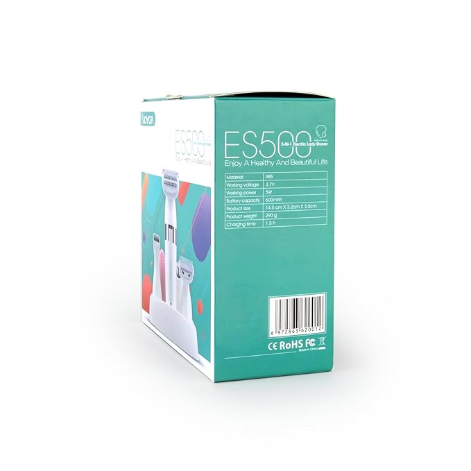 VOYOR Electric Shaver for Women Bikini Trimmer Hair Remover for Face Body, 5 in 1 Groomer Kit Lady Shaver Bikini Razor Women for Hair Trimmer, Cordless Rechargeable Waterproof ES500