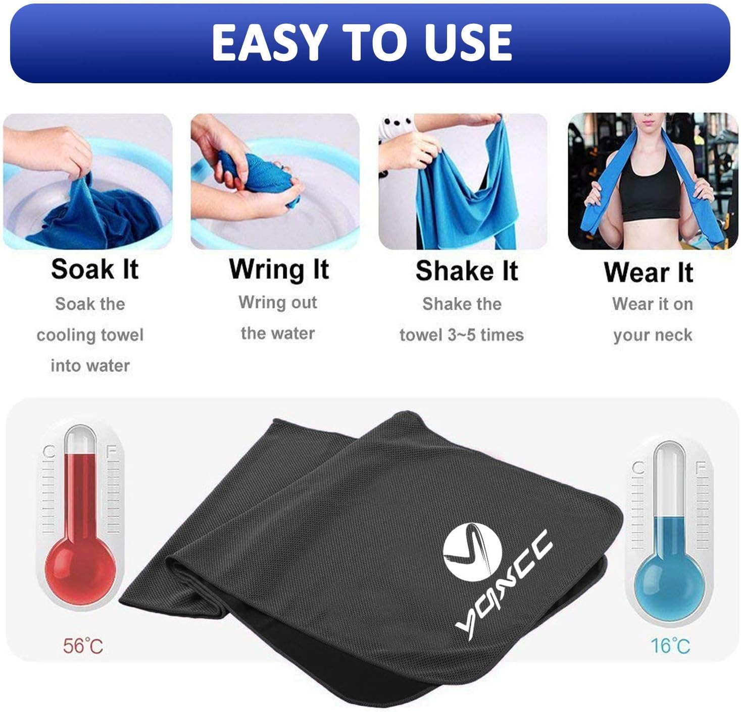 YQXCC Cooling Towel | 2 Pack 47"x12" | Ice Cool for Neck | Soft Breathable Microfiber Chilly | for Yoga, Golf, Gym, Camping, Running, Workout & More Activities