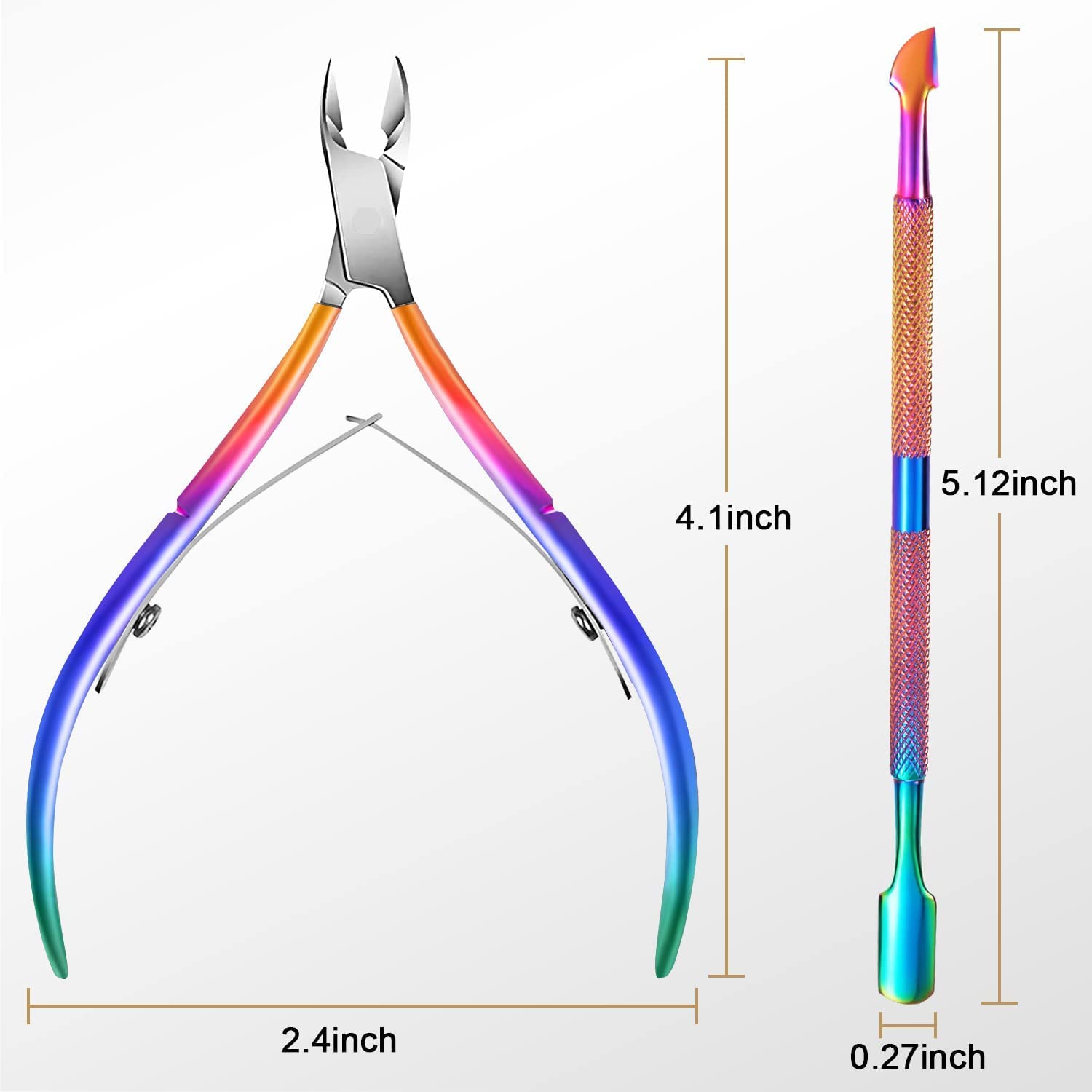 Easkep Cuticle Trimmer with Cuticle Pusher, Cuticle Remover Professional Stainless Steel Cuticle Cutter Nippers Rainbow Sharp Sturdy Pedicure Manicure Tools for Fingernails and Toenails 1