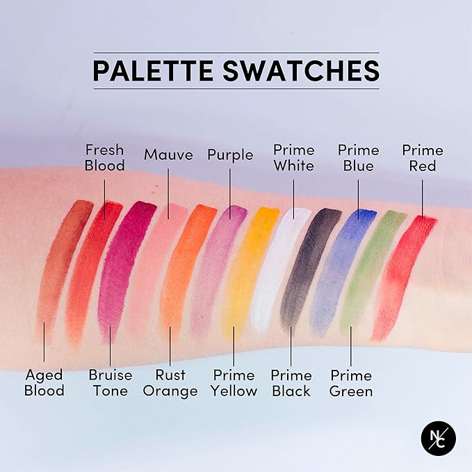 - 12 COLORS: Prime Red, Prime Green, Prime Blue, Prime Black, Prime White, Prime Yellow, Purple, Rust Orange, Mauve, Bruise Tone, Fresh Blood, Aged Blood.