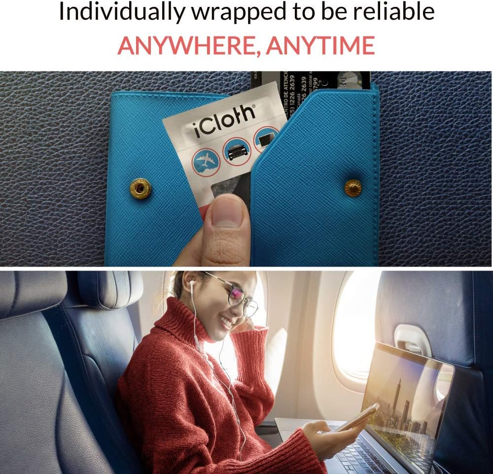 - PERFECT FOR ALL SCREENS AND ANTI-GLARE COATINGS – iCloth wipes effectively clean all types of screens with an ultra-pure formula of 70% isopropyl alcohol (IPA) and deionized water, ensuring no damage to sensitive coatings on smartphones, laptops, computer monitors, car touchscreens, and other electronics.