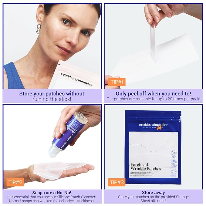 Wrinkles Schminkles Forehead Wrinkle Patches, 4-Pack, Reusable Hypoallergenic Silicone Smoothing Pads for Reducing Frown Lines & Face Lift Overnight