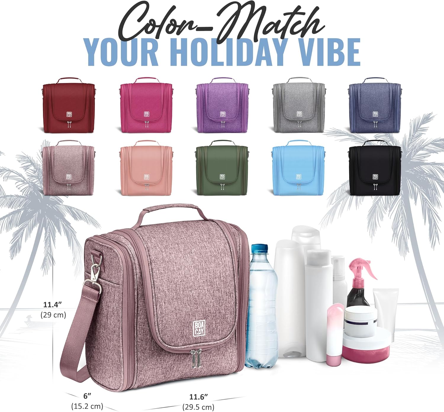 - If you want a large makeup bag, a cosmetic, or an accessories organizer, Boacay toiletry bag is for you. It is multifunctional, has metal zipper pulls, and it’s made of only high-quality materials.