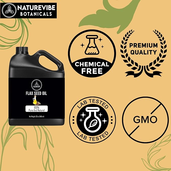 - ✅ Naturevibe Botanicals Flaxseed Oil 32 Ounces | 100% Pure & Natural | No Additives | No Fillers | Cold Pressed Body Oil | Great for Hair and Skin (946 ml)