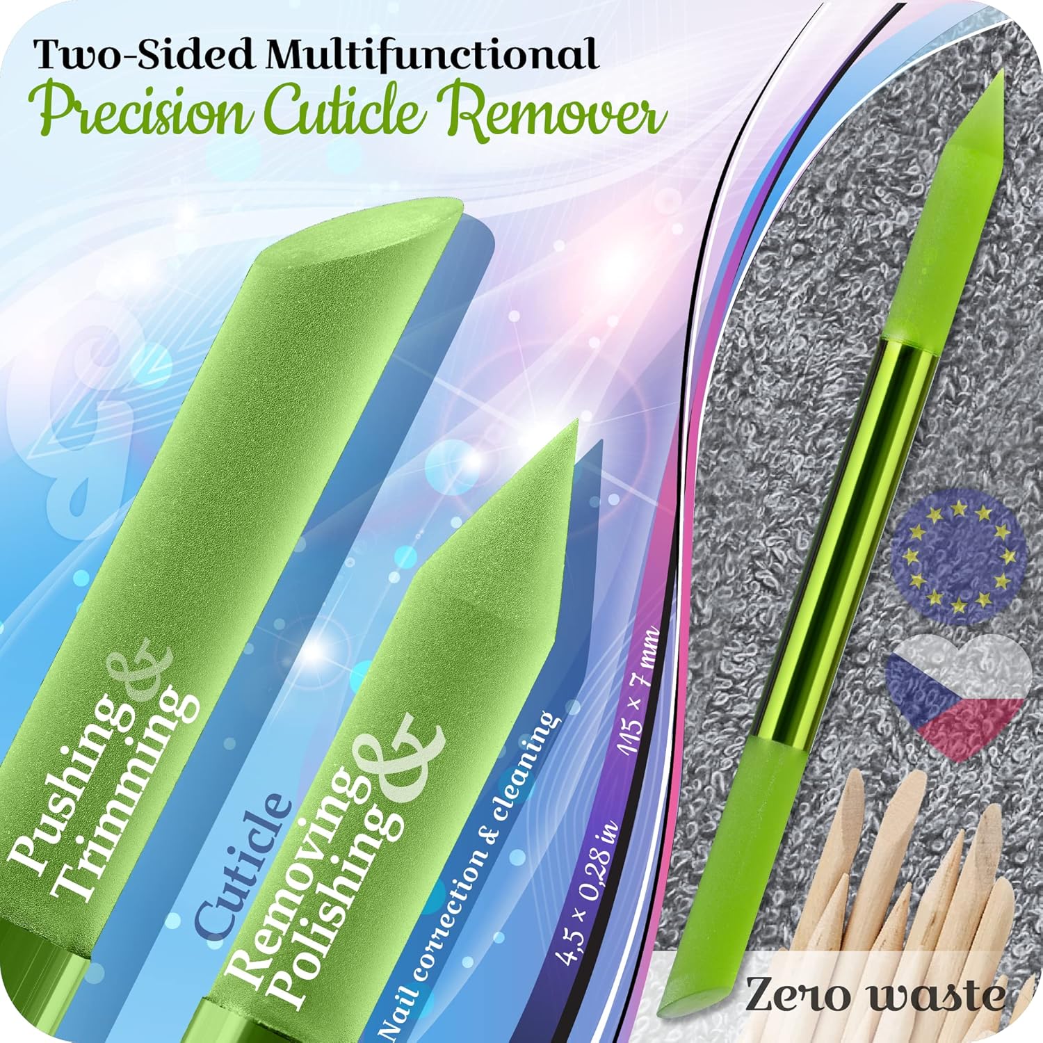 - MULTIFUNCTIONAL MANICURE STICK – Featuring a slanted side for gentle cuticle pushing and trimming, and a pointed end for cleaning hard-to-reach areas around and under nails. Ideal for various nail care procedures in a single, easy-to-use tool.