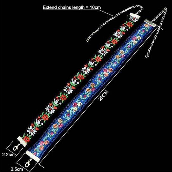 Boho Necklace Flower Choker Necklace Leaves Chain Necklace Jewelry for Women and Girls (Blue)