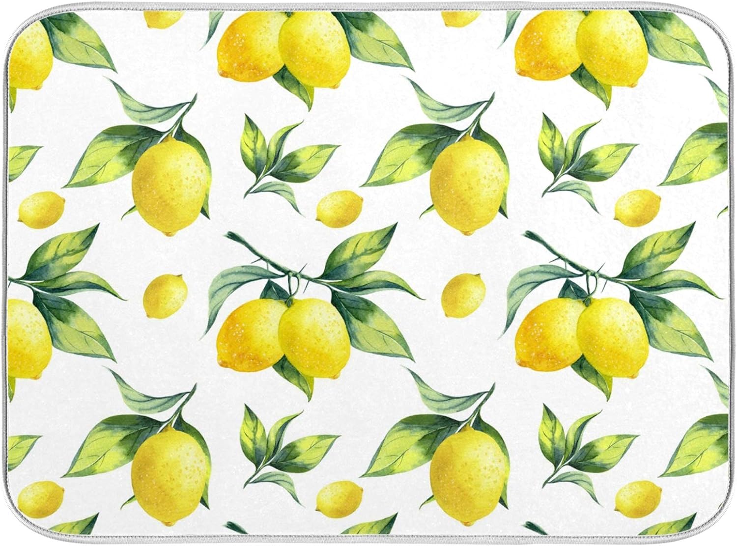 Tropical Lemon Leaves Dish Drying Mat 18x24 for Kitchen Lemon Yellow Lime Tree Dishes Pad Dish Drainer Rack Mats Absorbent Fast Dry Kitchen Accessories