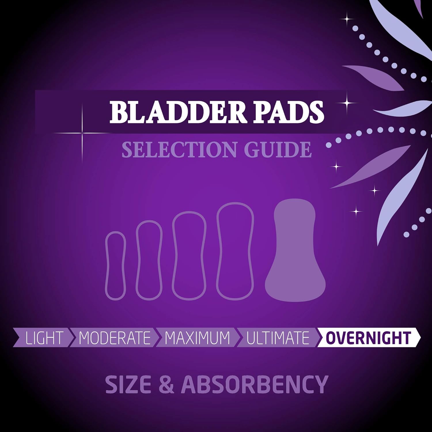 - Extra-wide back side is 50% wider than traditional pads to control larger bladder leaks