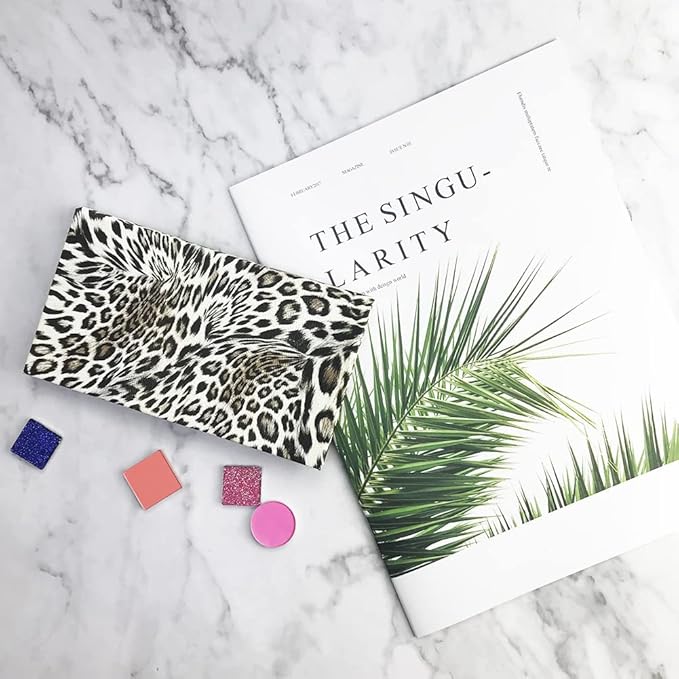 Mermaid Empty Magnetic Palette, Fish scale Empty Magnetic Palette for Highlighters Eyeshadows Lipstick Blush Powder Rectangle Large size (Leopard Grain)