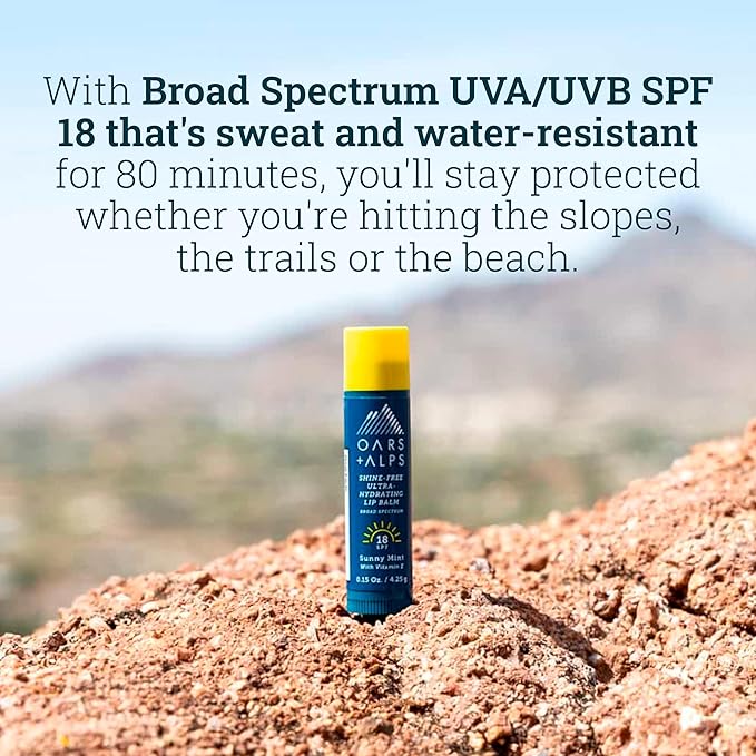 Oars + Alps Shine Free Lip Balm and SPF 18 Sunscreen, Lip Care with Sunny Mint Scent, Water and Sweat Resistant, 0.15 Oz Each, 3 Pack