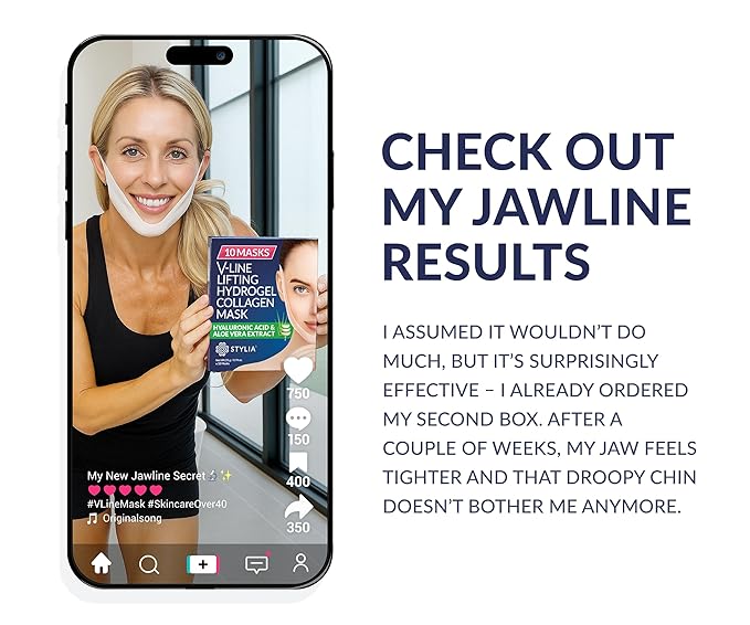 - DEFINE JAWLINE APPEARANCE: Infused with Hyaluronic Acid, Aloe Vera, and Cica. Our Collagen Mask targets the jawline, promoting enhanced definition for a sharper, more sculpted look. Experience the confidence of a slim, youthful face without invasive procedures.