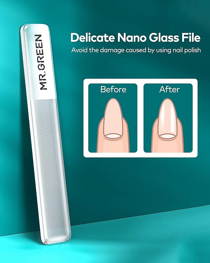 - [Superior Material] We have used high quality Japanese 420j2 stainless steel for the nail cutter similar to that used on surgical equipment. Now you can happily eliminate the damaged nail surface from the inferior grit nail file. Also the nano glass file can not only polished the nails but also give you a flattened nail very similar to applying nail polish