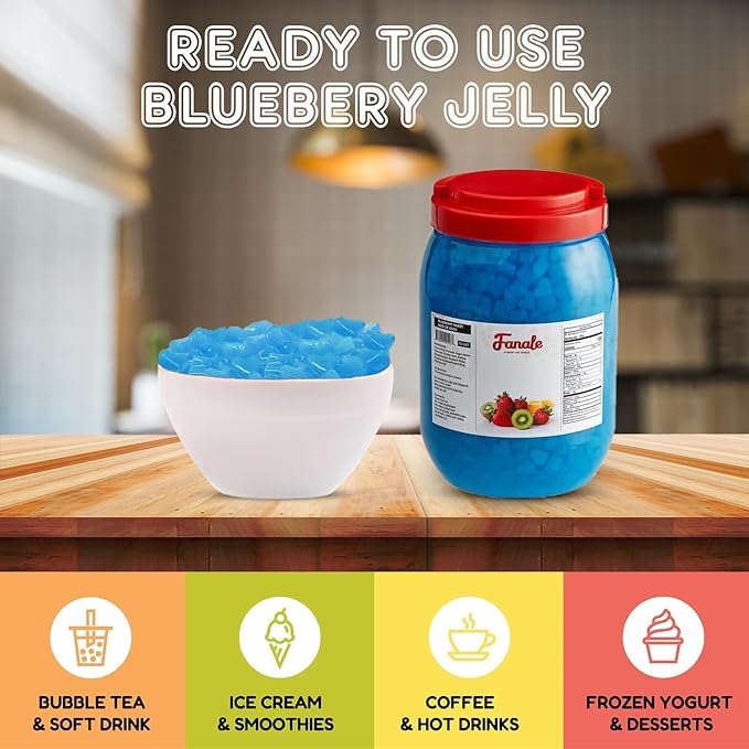 New Fanale Coconut Jelly Topping nata de coco for Boba Tea | Ice Cream | Yogurt | Smoothie | Milk Tea | Desserts (Blueberry Heart Shaped, 6.6 lb)