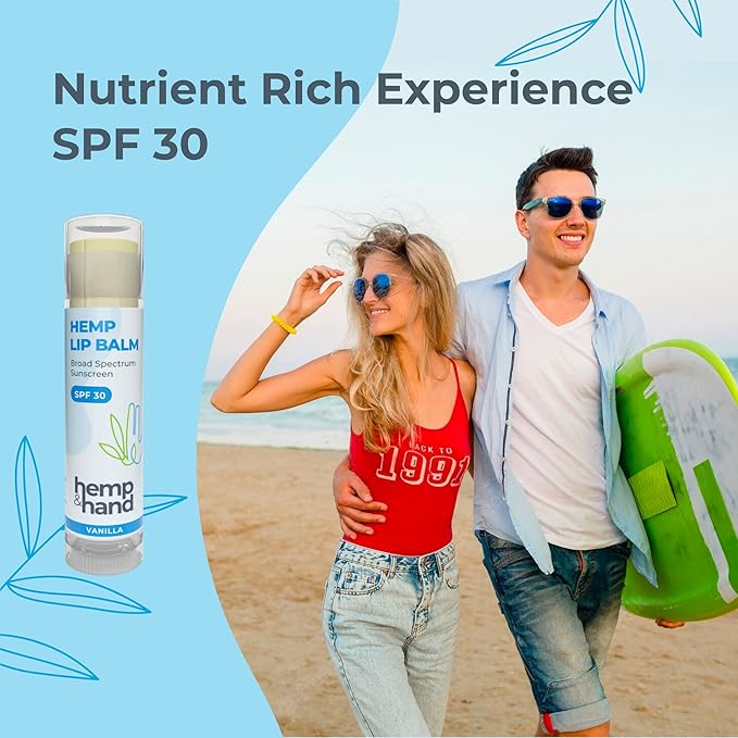 Organic Vanilla Hemp Lip Balm with Beeswax, Coconut Oil and Vitamin E - SPF 30 (2-Pack) - by Hemp and Hand