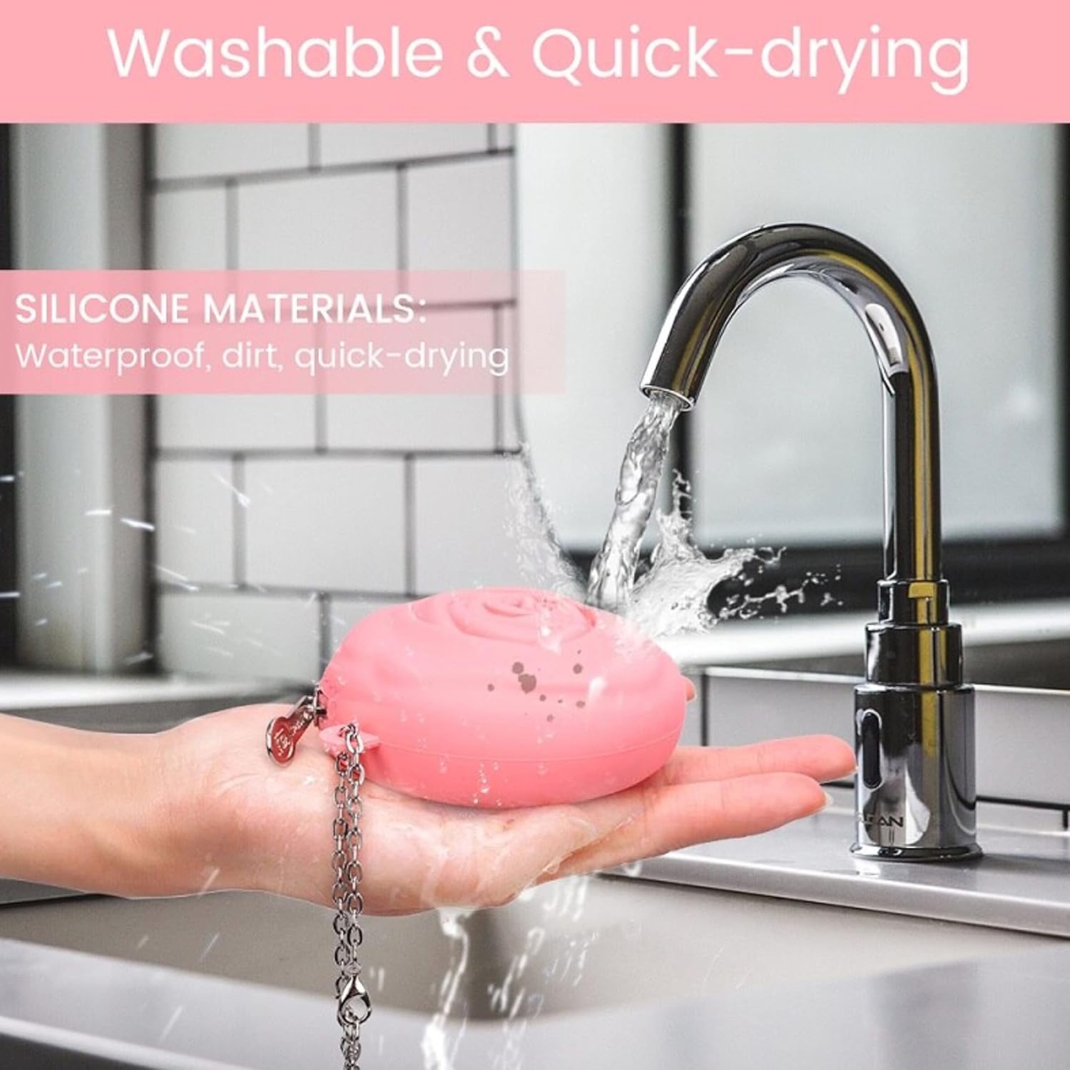 - [100% Silicone + Metal Chain] Easy to clean with water, quick to dry, lightweight, soft silicone for squeezing, & bright color for quickly finding it in your bag. Menstrual cups are sold separately, please visit our storefront to see more period products and gift sets offered by Adorable Pink Peri.