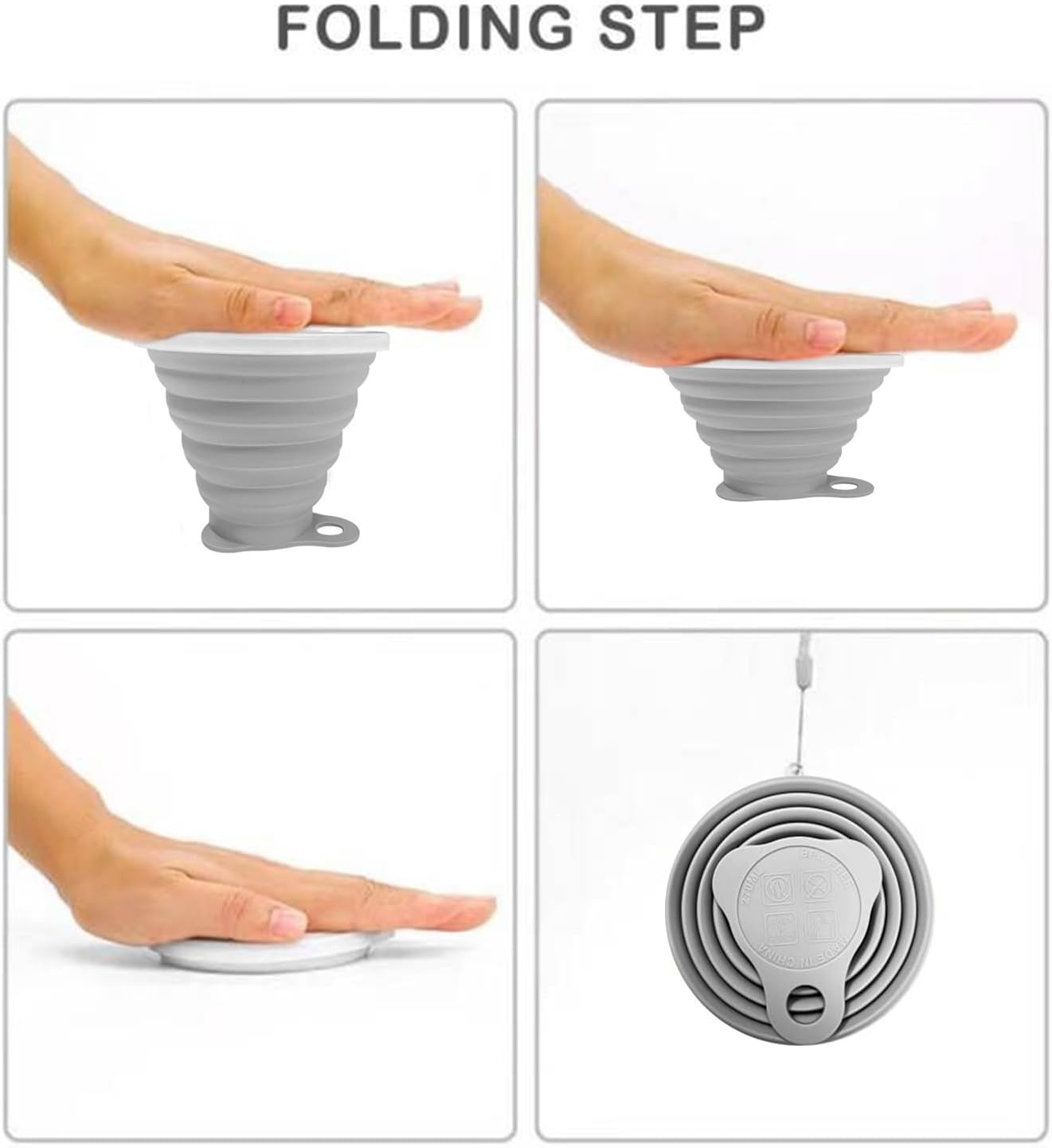 - Silicone Foldable Cup:Made of 100% food-grade silicone, BPA free, stainless steel cup ring and plastic cup lid. Easy to clean and reusable