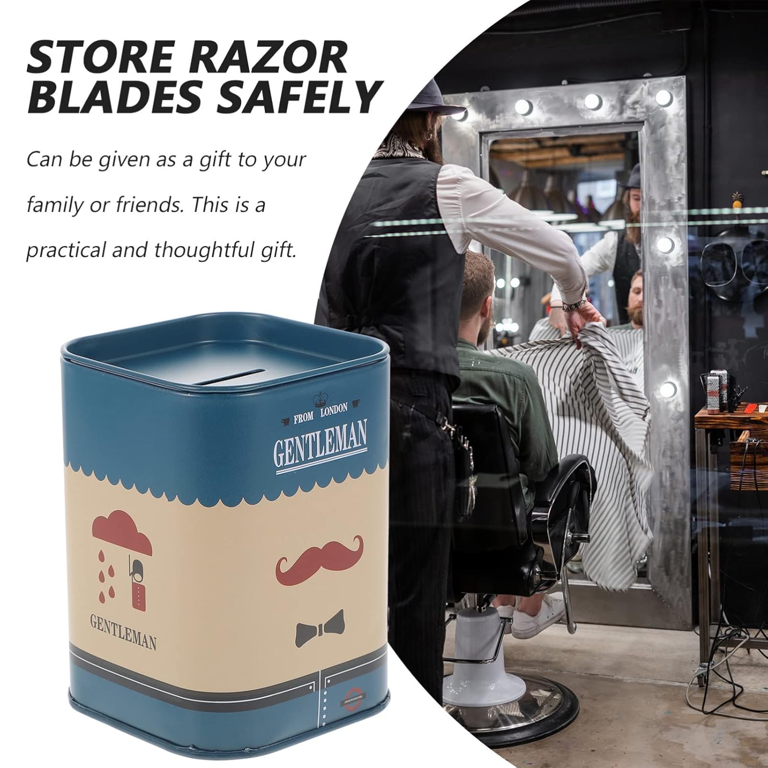 Beaupretty Razor Disposal Case Stainless Steel Safety Razor Disposer Razor Bank Storage Container for Safety Razor Storagement Blue