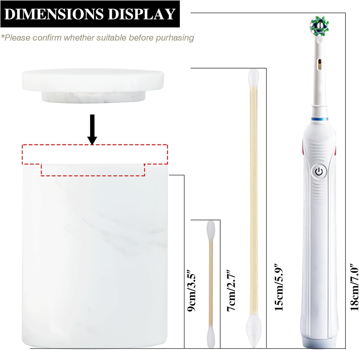 WORHE Marble Canister with Lid Natural Qtip Holder for Cotton Swabs, Balls, Pads, Floss Picks, Bath Salts - Vanity Makeup Storage Organizer Bathroom Essentials Accessories Decor White (DL011)
