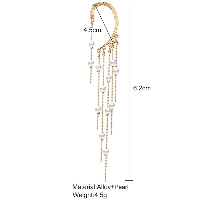 Boho Pearl Ear Wrap Earrings Gold Pearl Ear Cuff Earrings Long Drop Tassel Pearl Earrings Festival Gothic Earrings Non Piercing Ear Climber Cartilage Earrings Jewelry for Women and Girls