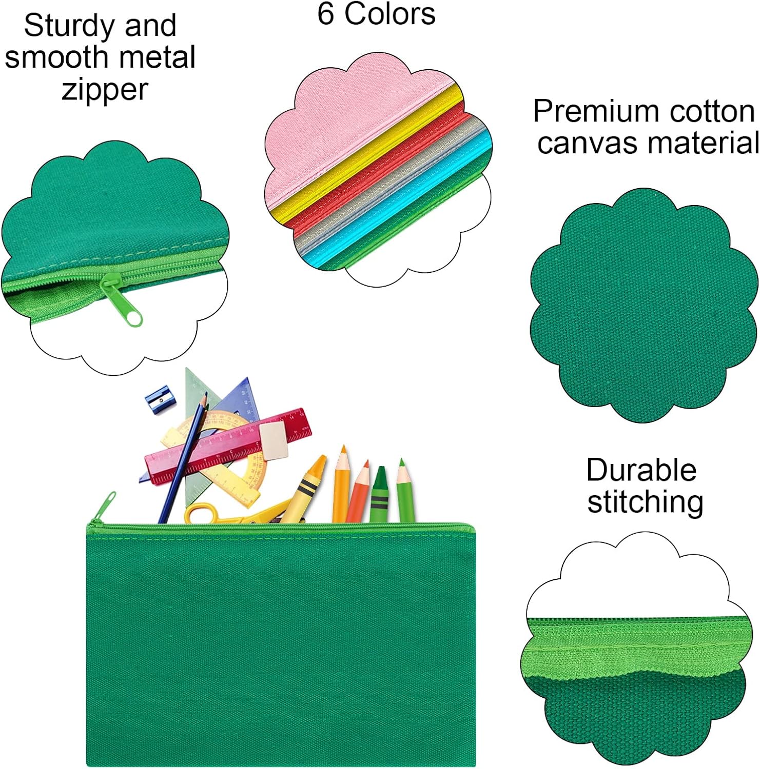 12 Pieces Cotton Canvas Makeup Bag, Multipurpose Cosmetic Bag with Zipper Travel Toiletry Pouch, Blank DIY Craft Bag (Multicolored A, L)