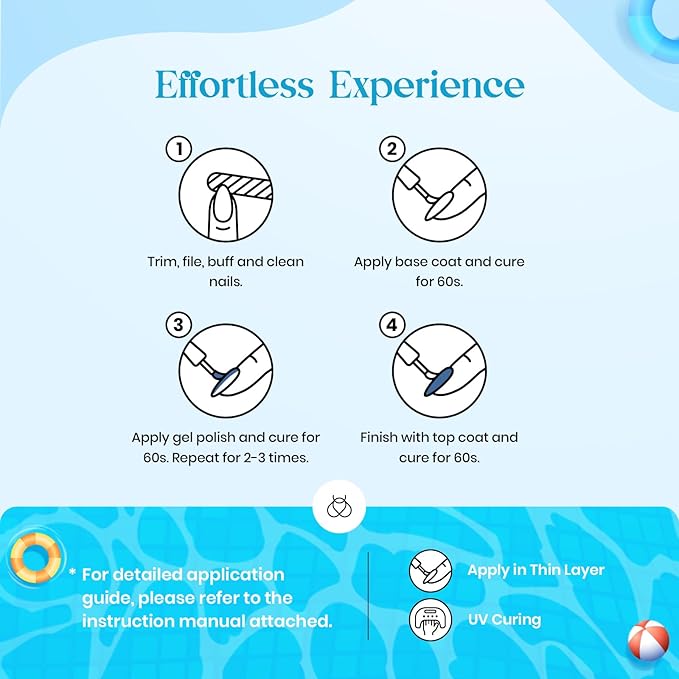 - 【Need Nail Lamp Curing & Easy Application】:Beetles gel nail polish need to be cured under UV/LED lamp for 60-120 seconds,quick drying and skin friendly,suitable for various nails. Easy to apply, suitable for beginners and professional nail salons.