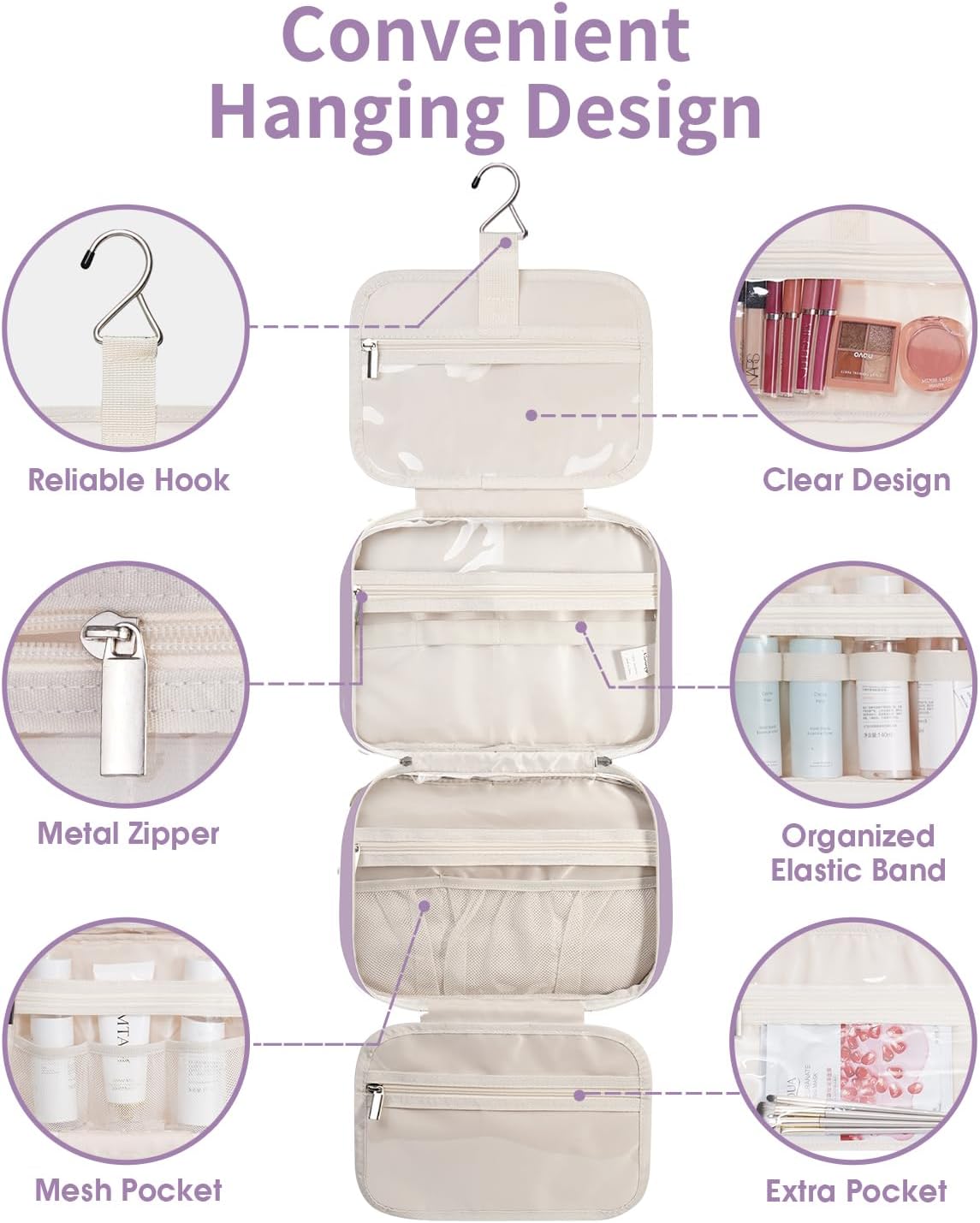 Narwey Hanging Toiletry Bag for Women Travel Makeup Bag Organizer Toiletries Bag for Travel Size Essentials Accessories Cosmetics (Purple (Medium))
