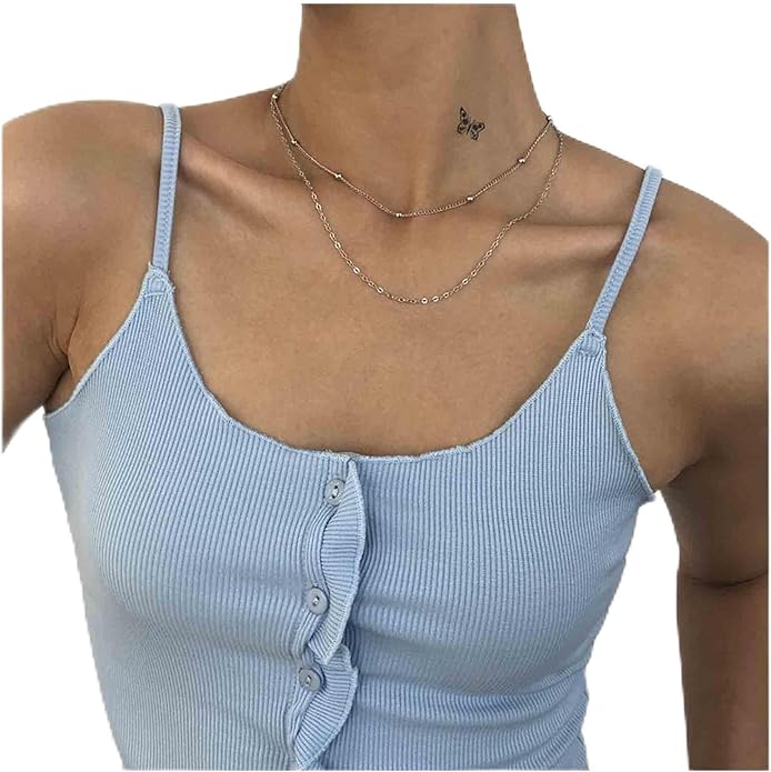 Boho Layered Satellite Choker Necklace Gold Ball Chain Necklace Short Collar Necklace Vintage Double Layer Necklace Jewelry for Women and Girls Gifts
