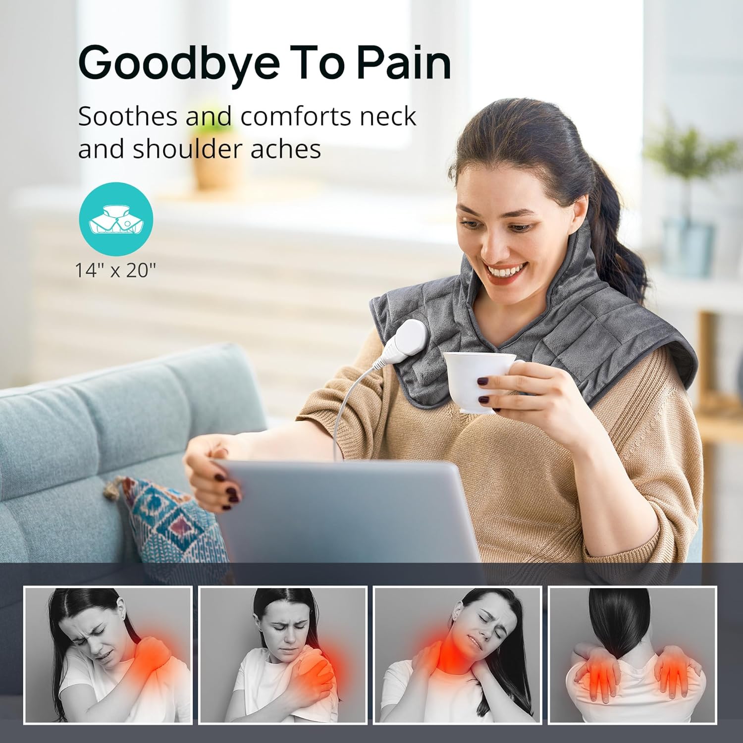 Heating Pad, Weighted Heating Pads for Cramps, 14'' x 20'' Electric Heating Wrap for Neck and Shoulders, 4 Heat Settings, Fast-Heating Technology, Auto Shut-Off (Gray)