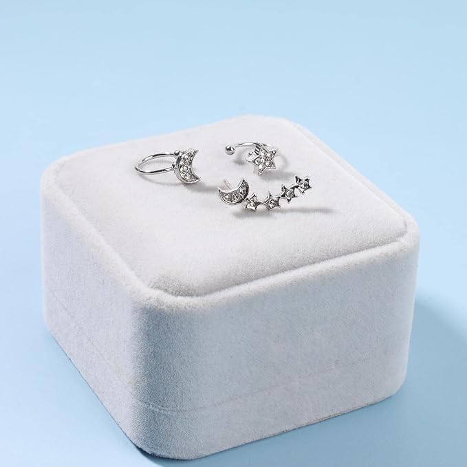 - Silver cz moon ear crawler earrings made of high quality alloy and crystal,lightweight and comfortable to wear.