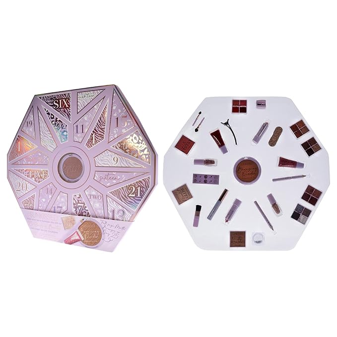 Sunkissed Christmas 25 Days of Beauty - Face, Lips and Eye Makeup - 2 Nail Polishes and 3 Cosmetic Brush Applicators - Vegan Formula - 25 Makeup Products and Accessories - 1 pc Gift Set
