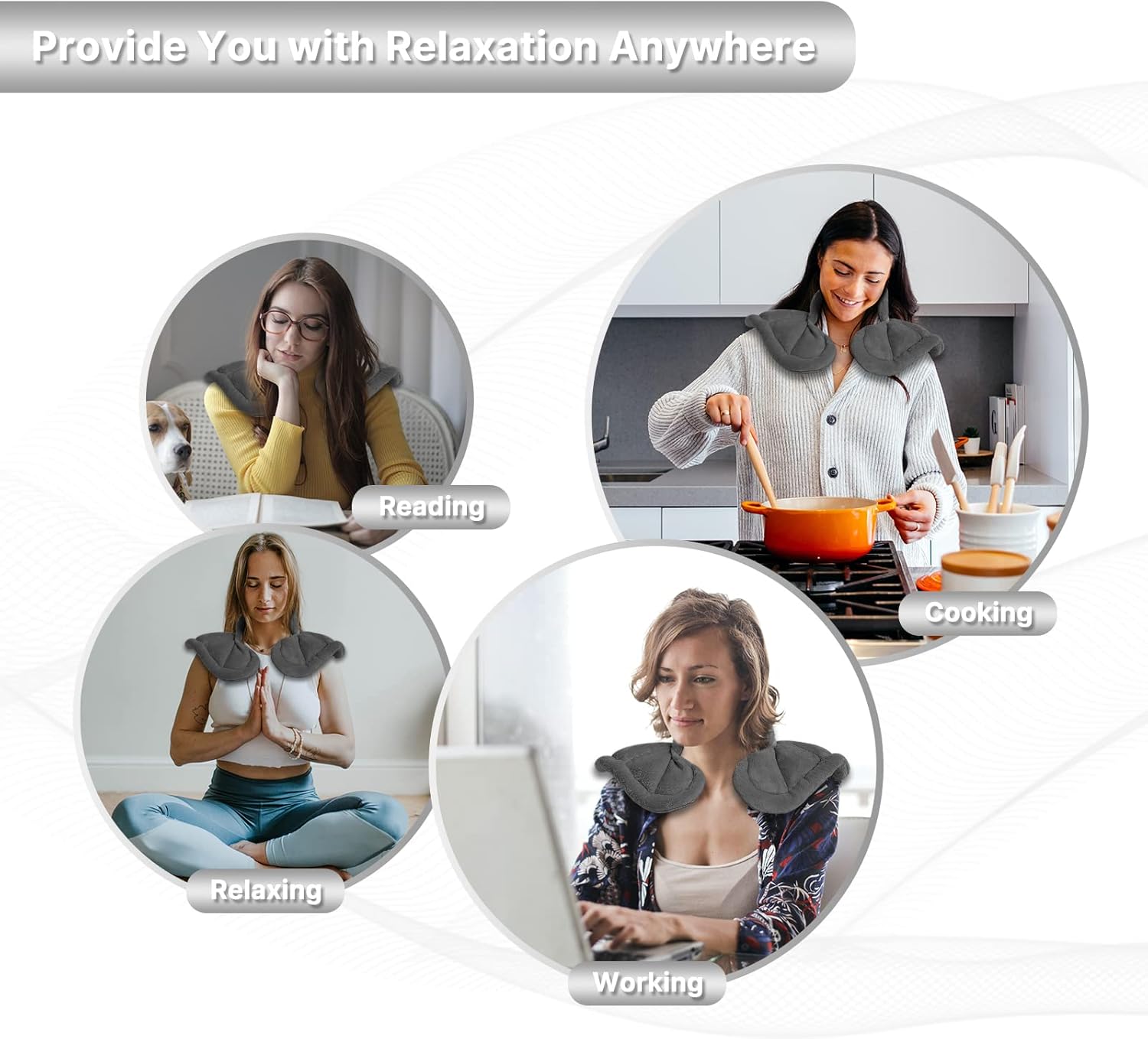 Neck Heating Pad Microwavable for Shoulders, Warmer Wrap Microwave Heating Pad for Neck and Shoulders for Pain Relief - Gray